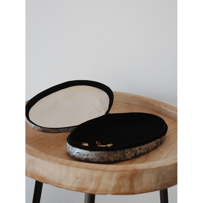 Dose aus Muschel in perlmuttfarben. Hochwertige Verarbeitung. Innen mit samtartigem Stoff ausgekleidet. Perfekt für beispielsweise Schmuck. Auch ein tolles Geschenk für einen ganz besonderen Menschen.