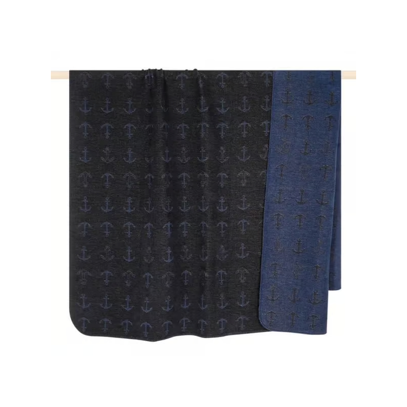 Die PAD Decke „Ocean Anchor“ Dark Blue bringt maritimes Flair und gemütlichen Komfort in jedes Zuhause. Das durchgehende Anker-Jacquardmuster in Dunkelblau und Schwarz verleiht der Wendedecke einen eleganten, nautischen Look, der sowohl in Strandhäusern als auch in modernen Lofts stilvolle Akzente setzt. Mit 150 × 200 cmGröße ist sie großzügig bemessen und eignet sich perfekt zum Einkuscheln auf Sofa, Bett oder Lieblingssessel – gerade in der Winter- und Weihnachtszeit.