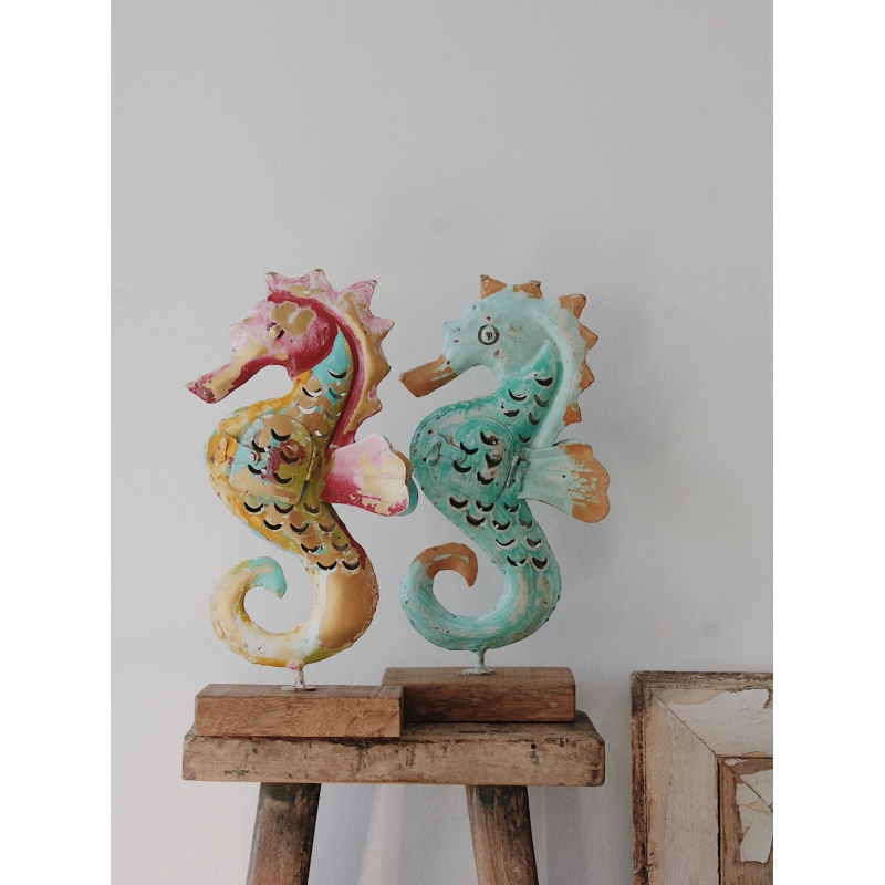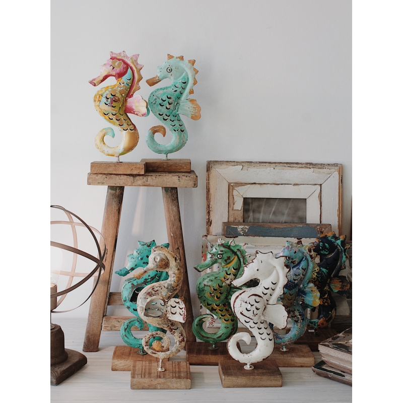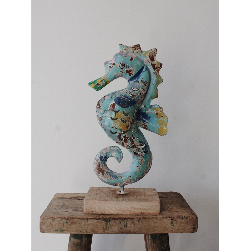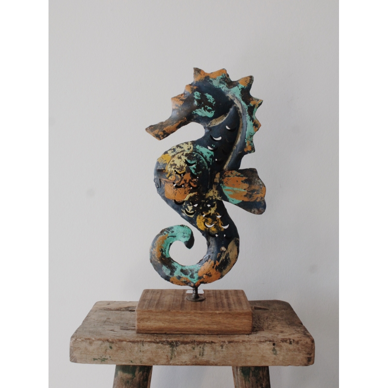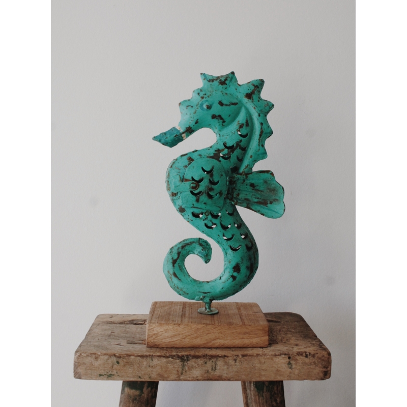 Handbemaltes Seepferdchen im Shabby Chic lackiert, antikes Finish.