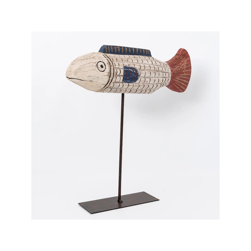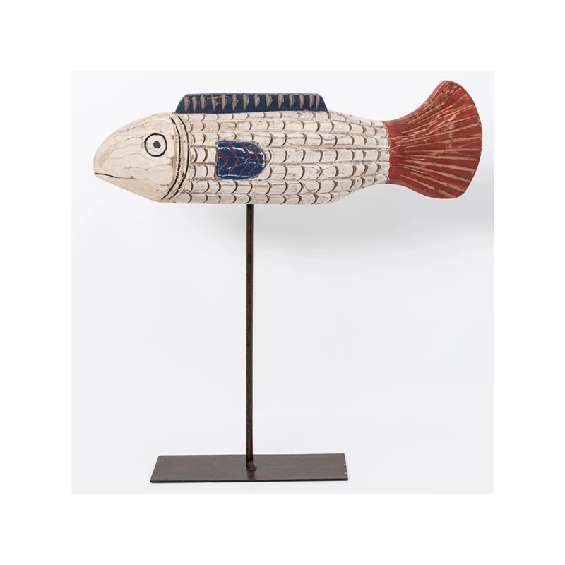 Handgeschnitzten Fisch aus Holz von Batela - bringt maritimes Flair in Ihr Zuhause! Leuchtende Farben und detailreiche Verarbeitung machen diese Figur zu einem echten Hingucker. Dank ihrer kompakten Größe passt sie in jeden Wohnbereich und kann auf dem zugehörigen Metallständer oder ohne platziert werden. Ein stilvolles Deko-Statement für jedes Ambiente!